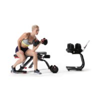 סטנד מקורי נח מסיבי ובטוח כולל מדף מדיה לאחסנת זוג משקולות BOWFLEX